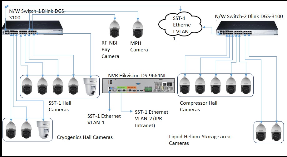Ethernet based PTZ cameras for SST-1 machine monitoring. An optimized video recording is setup based on motion detection. An AI based security system to detect human is already in place. An another application is being developed for the video summarization using machine learning technique.
