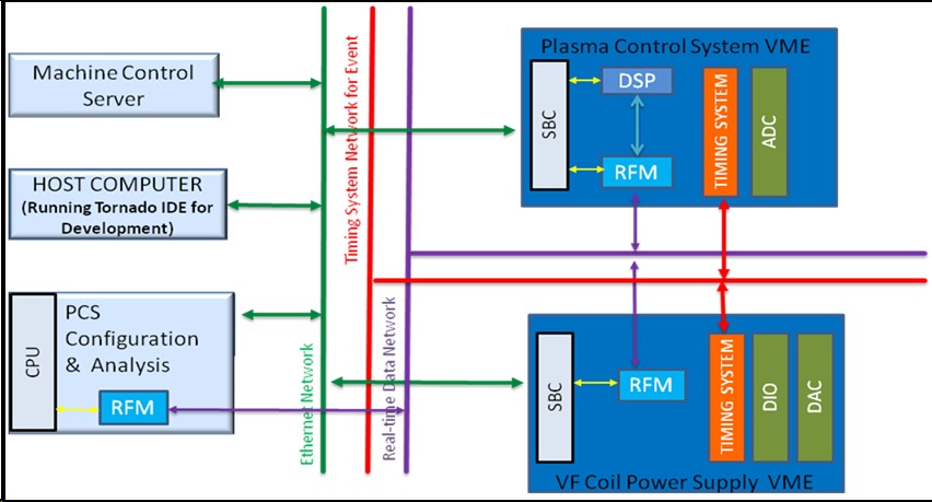 Embedded system for distributed control of tokamak plant system based on VME hardware and real time operating system vxWorks with real time data communication network - Reflective Memory for plasma parameters controls such as position, shape, density and heating.